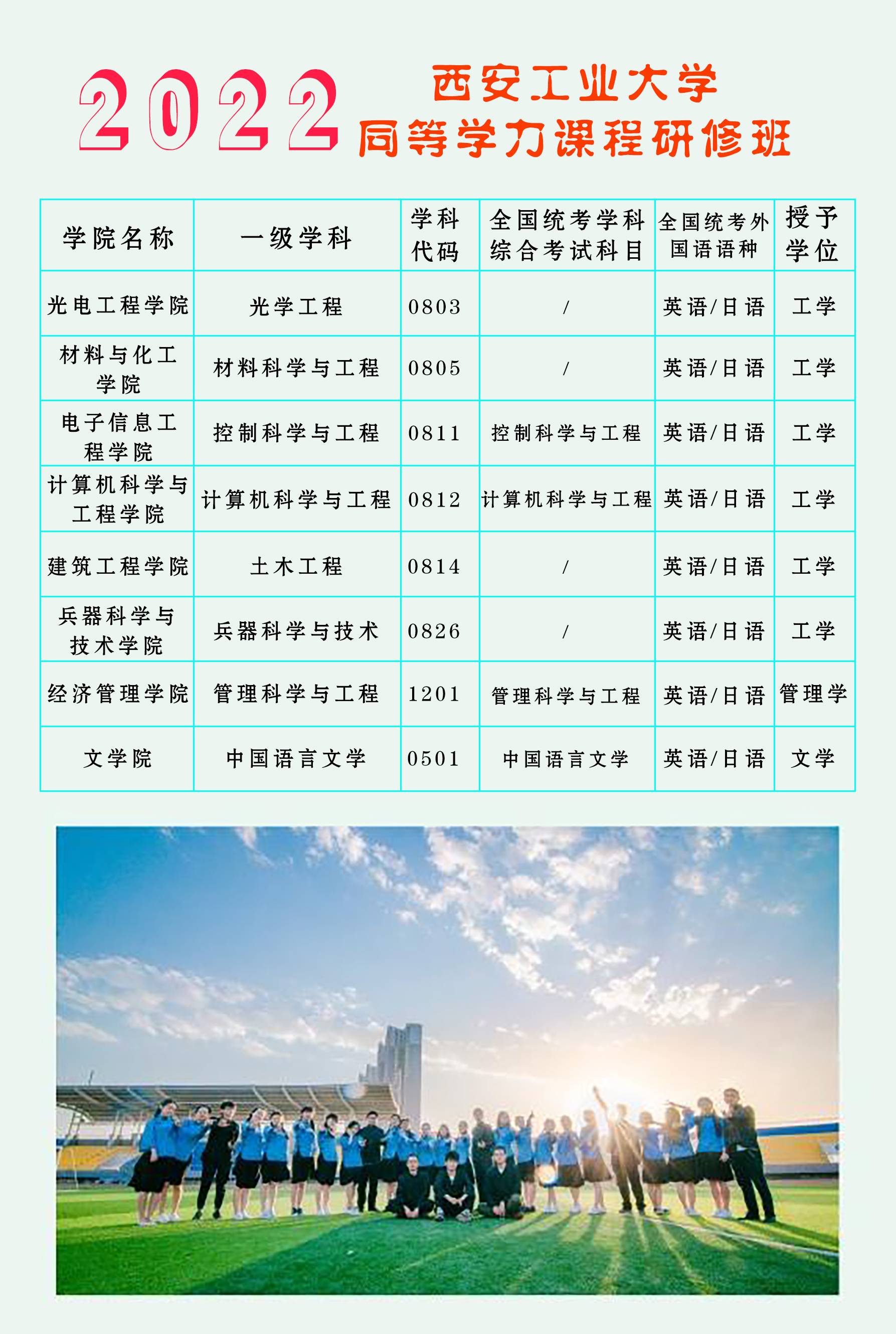 (3)报名表《西安工业大学同等学力课程研修班报名登记表》1份;